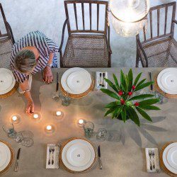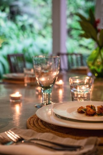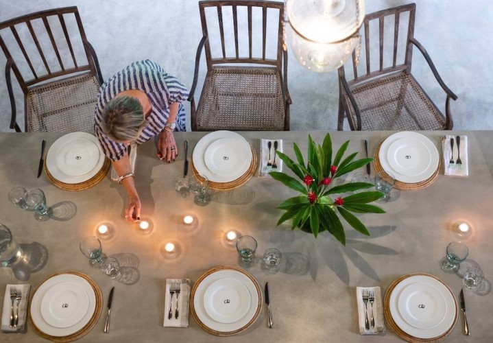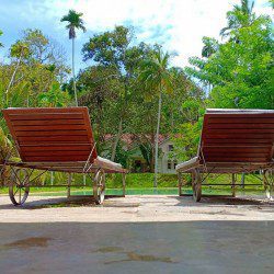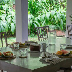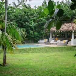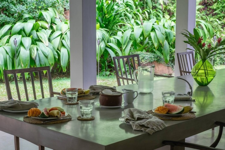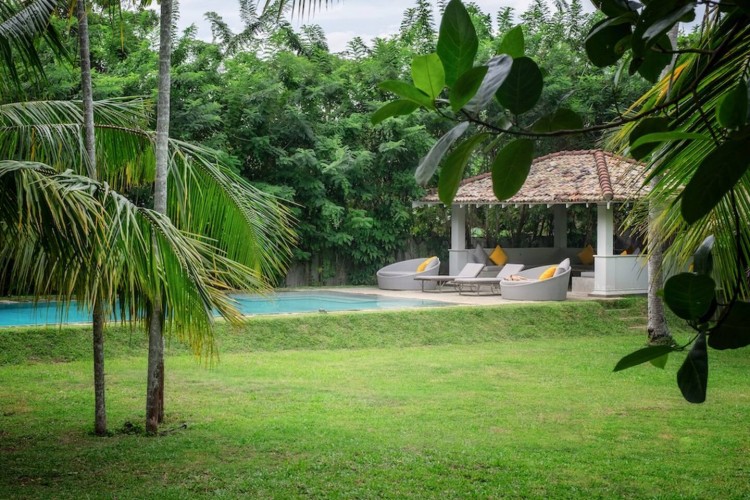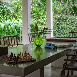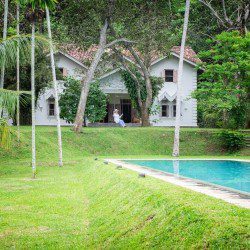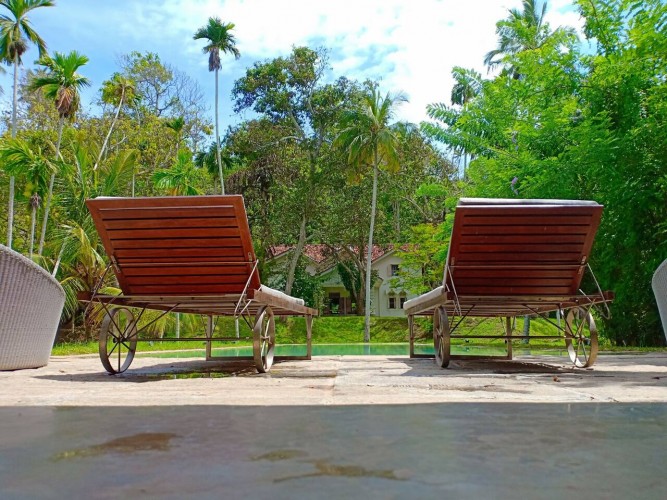 The swimming pool is surrounded by thriving tropical flora. Consequently, as far as you can see thickets of palm trees high up in the sky cast their shade on the lawn. The gorgeous tropical climate heightens the beautiful landscape. Sun chairs and rattan beds provide outside relaxation or even enjoy the view gloriously stretching in front of you. A stone pavilion with a shingled roof is behind the deck. Further, there is comfortable seating and a table ensure this is ideal for morning tea, breakfast or light evening snacks. A built-in natural stone dining table provides a memorable alfresco meal with loved ones. The in-house chef cooks local and international cuisines. You can easily request delectable meals at an additional cost. Finally, a fresh seafood BBQ will satisfy your seafood cravings. The villa staff are happy to help with any requests. Whether it is transportation using tuk-tuks to take you shopping to enjoy the village. Or, shopping for ingredients for a meal you or the chef are cooking is an excellent way to learn about Sri Lankan food and ingredients. Or even better, specialist services such as massages or yoga are easily catered for. Staff know the locality and therefore, give excellent recommendations on where to go and what to see during your time in Sri Lanka.Details