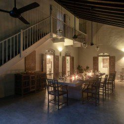 Siri Wedamadura Villa by Colonial Villas in Sri Lanka is a beautiful, tropical paradise in the village of Mirissa, Sri Lanka. A traditional colonial Sri Lankan home features understated vintage interiors. The Villa espouses a sense of calm serenity. It houses four elegant bedrooms, large living spaces, and expansive gardens. The villa is a complete family-friendly holiday home. What’s more, the most striking feature of the villa gardens dappled with tall palm trees. If you’re a fan of adventures and wildlife, this is the ideal location. You can even watch the world’s largest beast, the gigantic blue whale is just minutes away. There are water activities such as swimming, snorkelling or surfing at Weligama or Marisa just minutes away.The Villa Siri Wedamadura